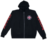 Crafted from premium, heavy-duty cotton, this zip-up hoodie offers a soft, cozy feel without compromising on durability. The striking cross motifs are featured prominently on the back and sleeves, providing a distinct and exclusive look. With a high-quality zip closure, a comfortable hood, and ribbed cuffs and hem, this hoodie is perfect for layering or making a statement on its own.