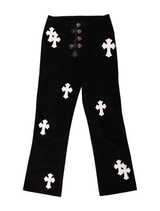 Step into premium streetwear with the Chrome Hearts Cross Patch Straight Leg Jeans. These standout black jeans feature signature cross patchwork embroidery that adds bold visual interest to a timeless silhouette. Crafted with a premium cotton blend and a touch of stretch, they combine durability and comfort with iconic edge.