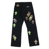 Chrome Hearts Green & Leopard Cross Patch Jeans