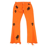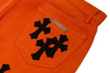 The Chrome Hearts x Off-White Cross Denim in 'Orange' is a limited-edition collaboration between the iconic high-fashion brands Chrome Hearts and Off-White. This unique piece merges Chrome Hearts’ signature rebellious style with Off-White’s modern, street-inspired aesthetic. The result is a standout item that exudes luxury and exclusivity.