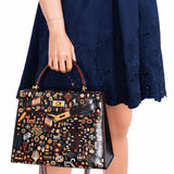 Vintage Hermes Kelly 28 Sellier Black Box Painted "Qashqai" Design with Gold Hardware