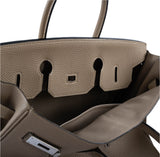 Known for its soft dove gray tone with subtle beige undertones, Gris T blends effortlessly into any luxury wardrobe. The supple Togo leather offers a pebbled texture and resistance to wear, making it a favorite among Hermes collectors. Featuring two rolled handles, a clochette with lock and keys, and a structured body with tonal stitching, this Birkin is a true icon of craftsmanship.