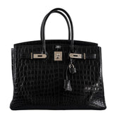 Hermes Birkin 35 Matte Black Niloticus Crocodile – Palladium Hardware