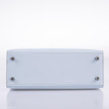 The Hermes Kelly Sellier 25 is a timeless classic, embodying elegance and sophistication. This example is crafted from fine-grained Epsom leather in the stunning and elusive shade of Blue Brume. The color, a delicate mix of blue with hints of gray and periwinkle, gives off a cool, sophisticated tone that is complemented by sleek palladium hardware.