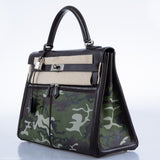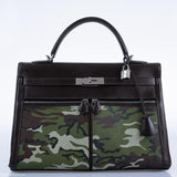 Vintage Hermes Kelly Lakis 35 – Chocolate Box & Toile Camouflage Painting with Palladium Hardware