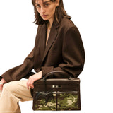 • Material: Calf Box Leather, Hand-Painted Toile Canvas