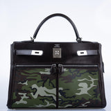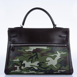 Vintage Hermes Kelly Lakis 35 Chocolate Box & Toile Camouflage Painting Palladium Hardware
